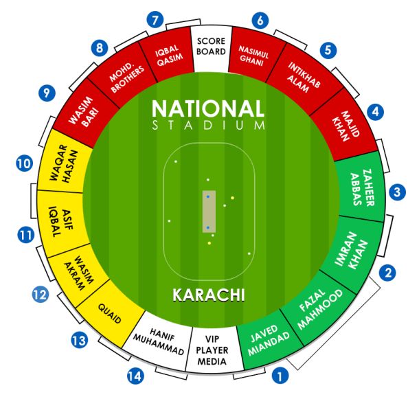 National stadium Seating arrangement map is very useful while visiting the stadium. It is a big stadium in terms of seating capacity. During High Voltage matches, it is tough to locate seats inside the stadium. We have shared the national Stadium Karachi seating map with all the important details. All types of enclosures are clearly depicted on the map along with entry Gates.