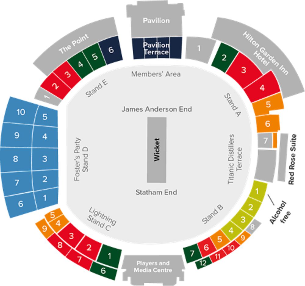 Old Trafford Cricket Ground Seating Plan (Source – lancashirecricket.co.uk)