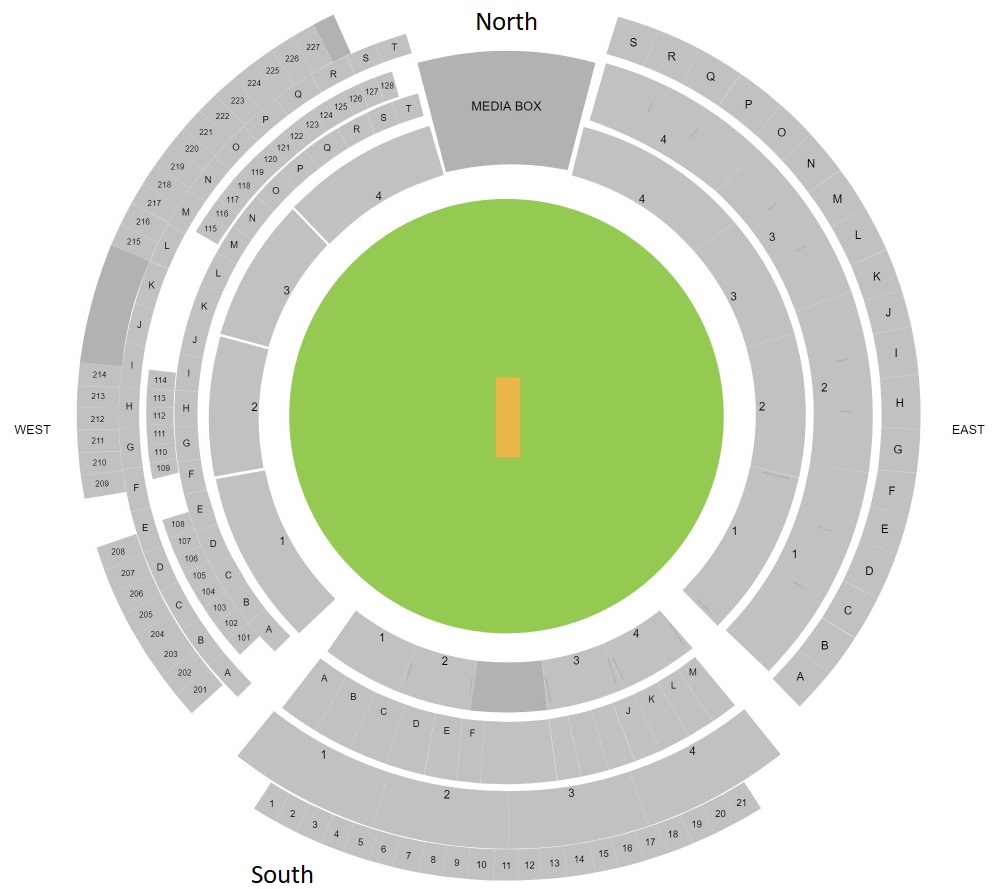 We have shared two maps of the Saurashtra Cricket Association Stadium, Rajkot. All the important details of Rajkot Stadium are clearly depicted on the Rajkot Stadium map along with directions and pitch position. All the rows and stands are shown on the map so visitors can easily find their seats. The Above maps are also handy for getting an idea of the view from the seat before booking Rajkot stadium tickets.
