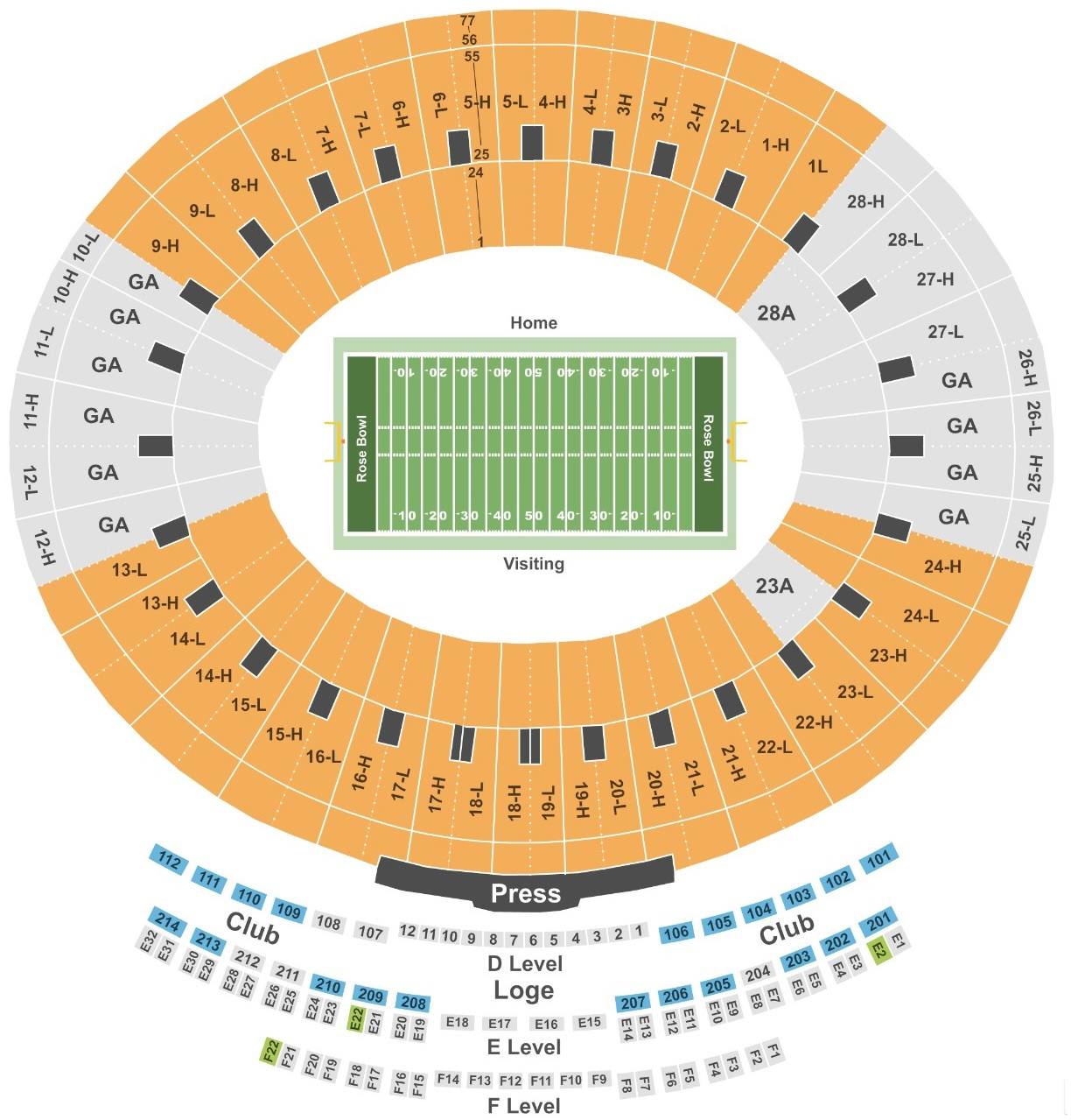Rose Bowl stadium seating chart for Rose Bowl game 2023 is shared below.
