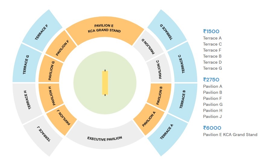 All types of seats, corporate boxes, stands, tiers, and pavilions, along with pitch and directions, are depicted on the map. The rates below are not applicable for the upcoming match. Entry gates, stands, pavilions, corporate boxes, ramps, etc are clearly depicted on the map. Pitch location, players’ dressing room, stairs, etc. are also shown on the map.